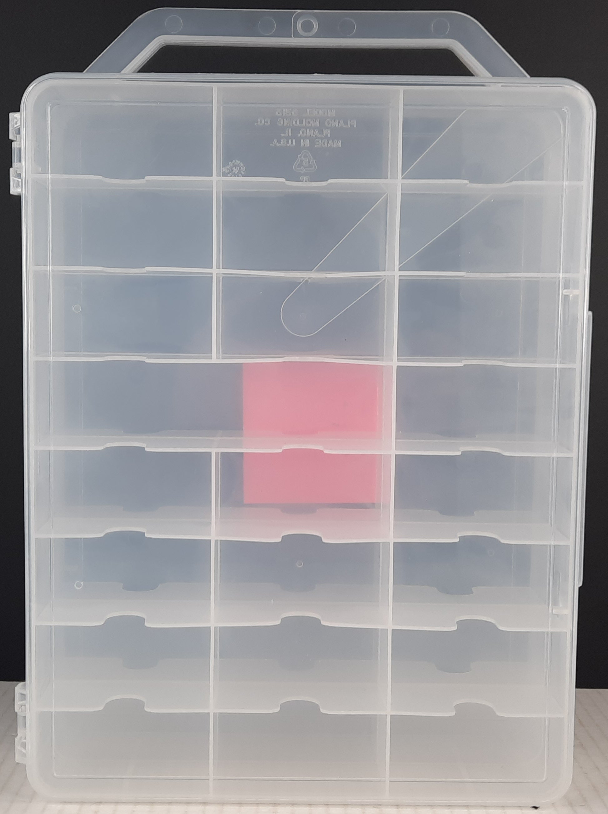 New Plano #5315 clear case with handle for your 1:64 diecast, fits 24 vehicles each side for a total of 48 vehicles. There is a double-wide slot on each side that can be used for longer vehicles. MADE IN U.S.A.