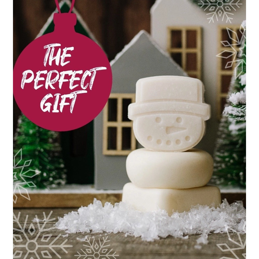 Viori Snowman Bundle Winter Berry Solid Shampoo Conditioner Body Butter Set. Includes one shampoo bar, one conditioner bar, and one body butter bar. All full size bars. Winter Berry Scent.
